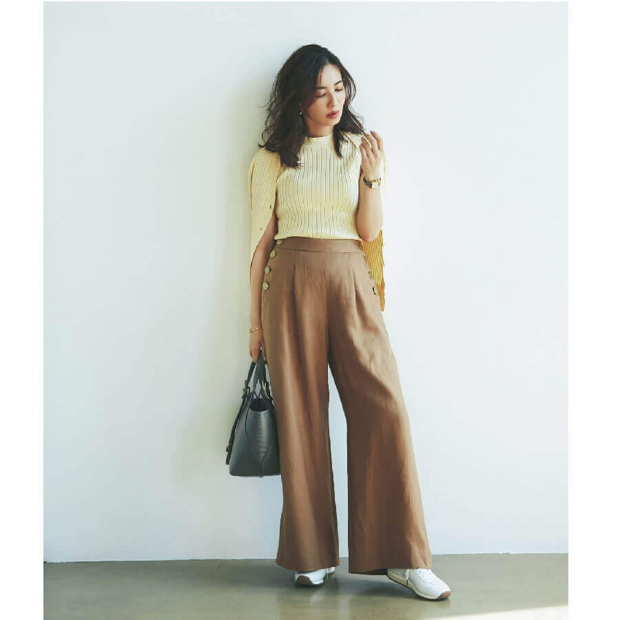 スニーカー[MARATHON-L]¥16500/カメイ・プロアクト(パトリック) カーディガン¥19000・ニット¥16000/マルティニーク ルコント ルミネ有楽町店(マルティニーク) パンツ¥38000/レリタージュ マルティニーク(レリタージュ) イヤリング¥14000/ルーカス ジャック 時計¥25000/オ・ビジュー(ロゼモン) バングル¥15400/シップス 大宮店(メデゥスィン・ドゥース) バッグ¥35000/デミルクス ビームス 新宿(トフ アンド ロードストーン)