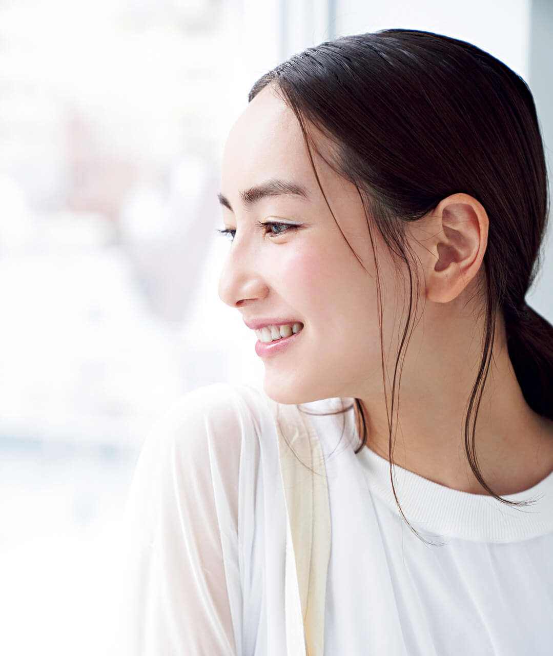 「仕事の日は眉やラインをしっかり描き、凛としたイメージに。休日は極力引き算メイクでリラックス、と使い分けています」 (辻元 舞さん)