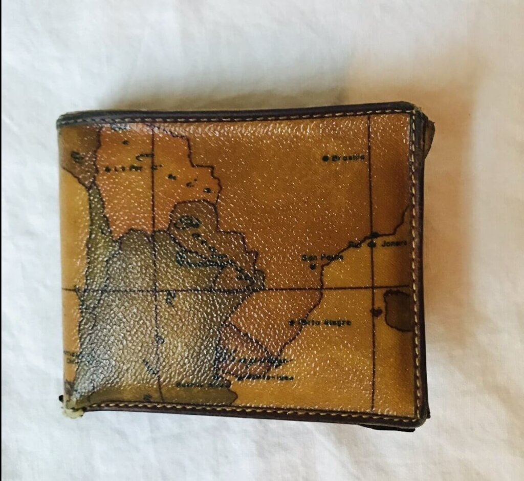 「プリマクラッセのメンズ財布。あまり人と被らないお財布が欲しいなと大学になって初めて自分で買ったお財布。実は古い航海図とかが好きで、ずっとお気に入りのお財布です。日本に一時帰国する時はこのお財布に日本円を入れていくため、大学の同級生に会うとまだそれ使ってるの?!と驚かれます。正直もう縁はボロボロなのですが、内側の革がとても綺麗な色になってきたのでなかなか手放せません。神保町あたりの古いお店にいつか航海図を探しに行きたい。ロエベのお財布も大切に一緒に歳を重ねたいなと思います♡」