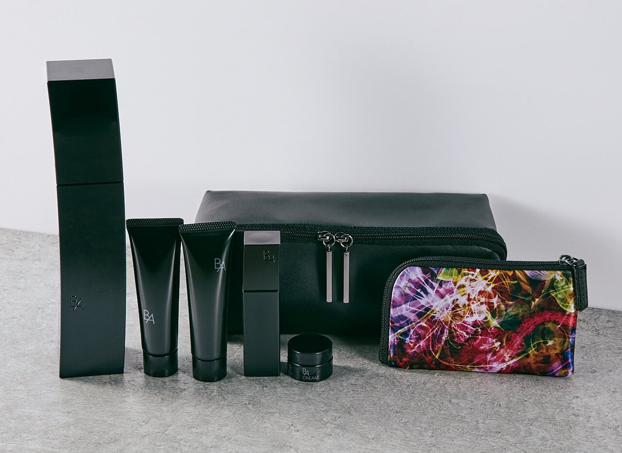 生命感あるハリ肌を目指すB.Aの最高峰スキンケアから、現品サイズのローションほか、クレンジング、洗顔、ミルク、クリームのミニサイズを試せるコレクション。使うほどに肌の変化を実感。重なりゆく香りも楽しめ、ケア中もラグジュアリーな時間を過ごせます。エコレザーを用いたポーチと、ミニプリントポーチも。¥22500