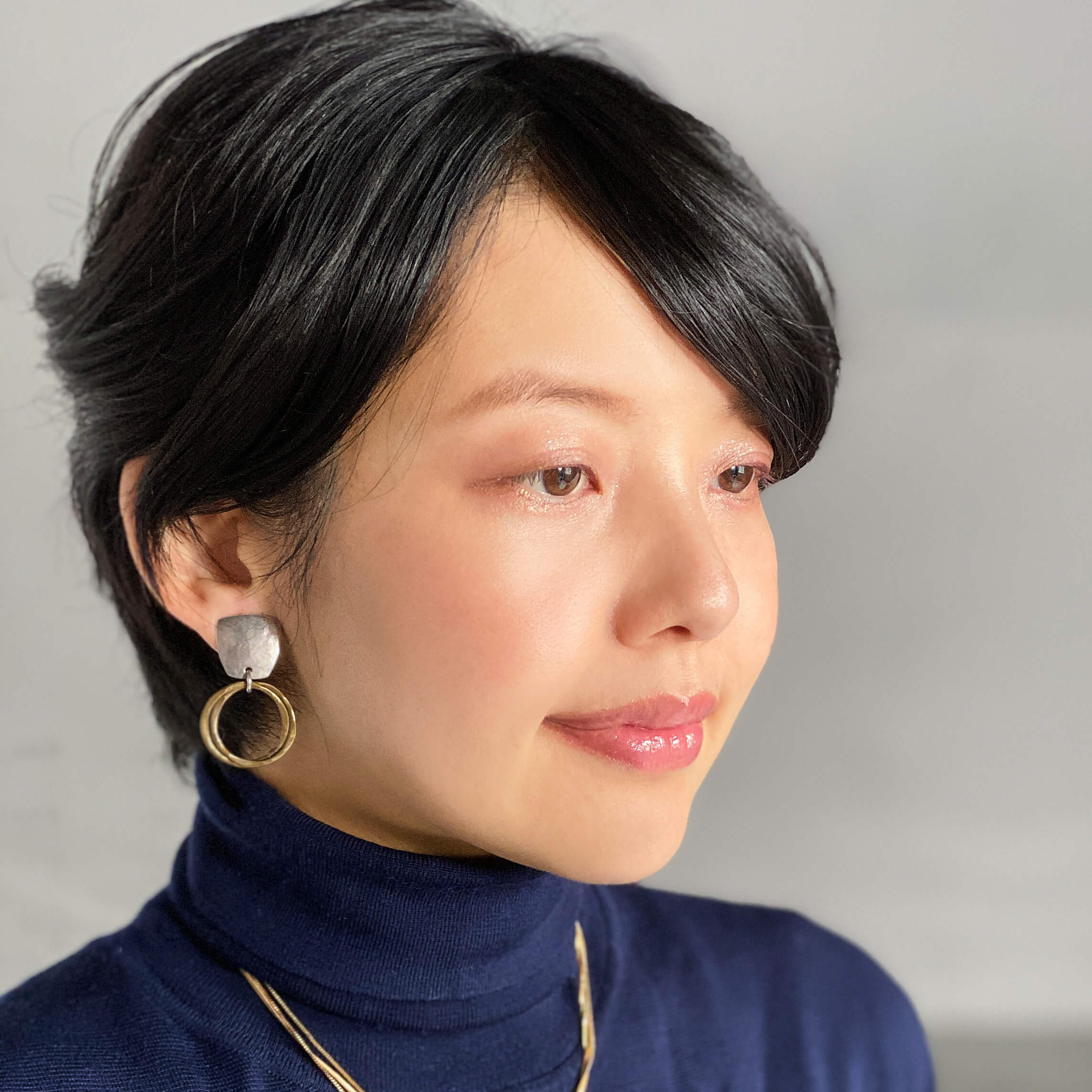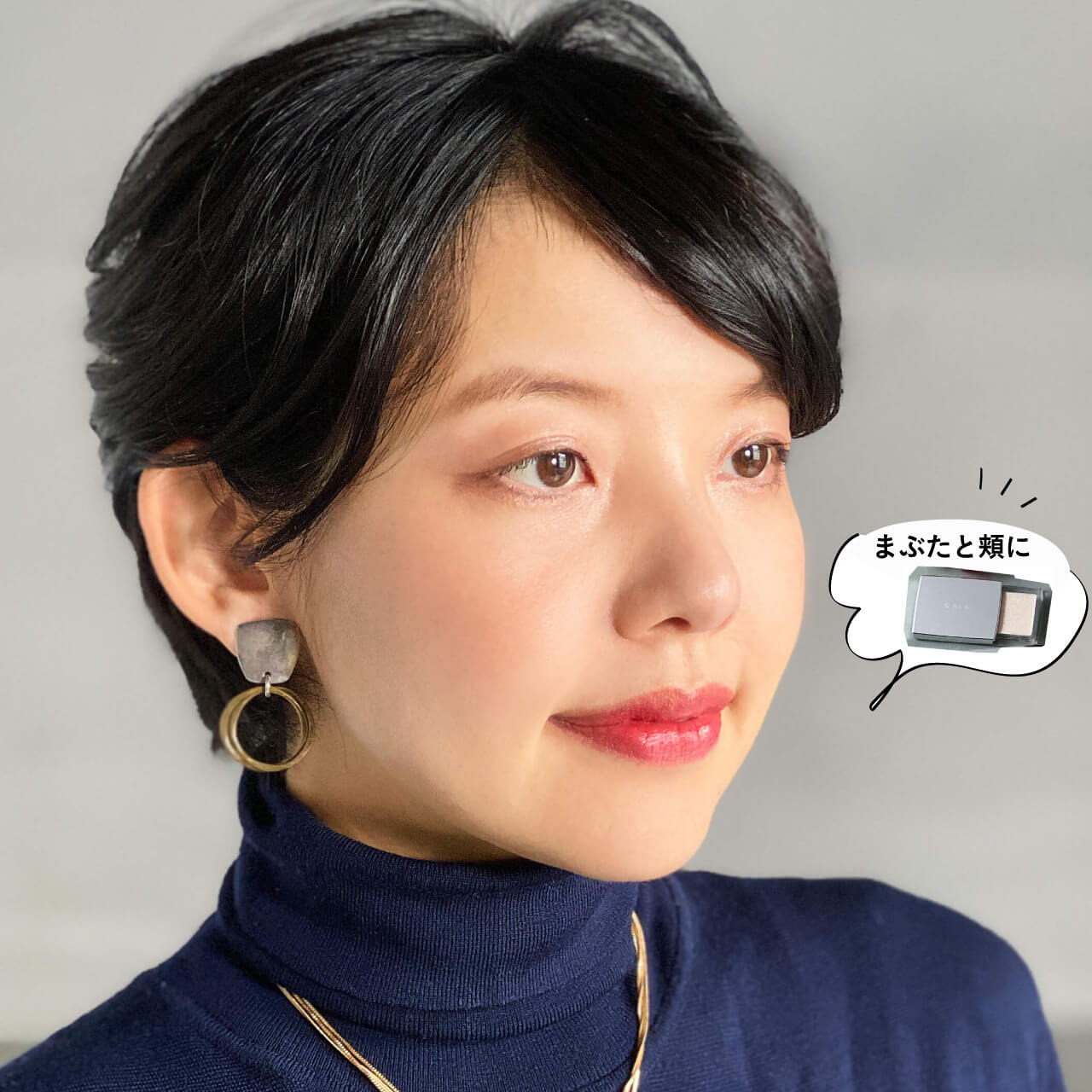 アイメイクにRMK アイライナー&マスカラを使い、唇にはRMK リップスティックコンフォート ブライトリッチを。RMK ルミナスジェルをまぶたと頬にのせてツヤをプラス。