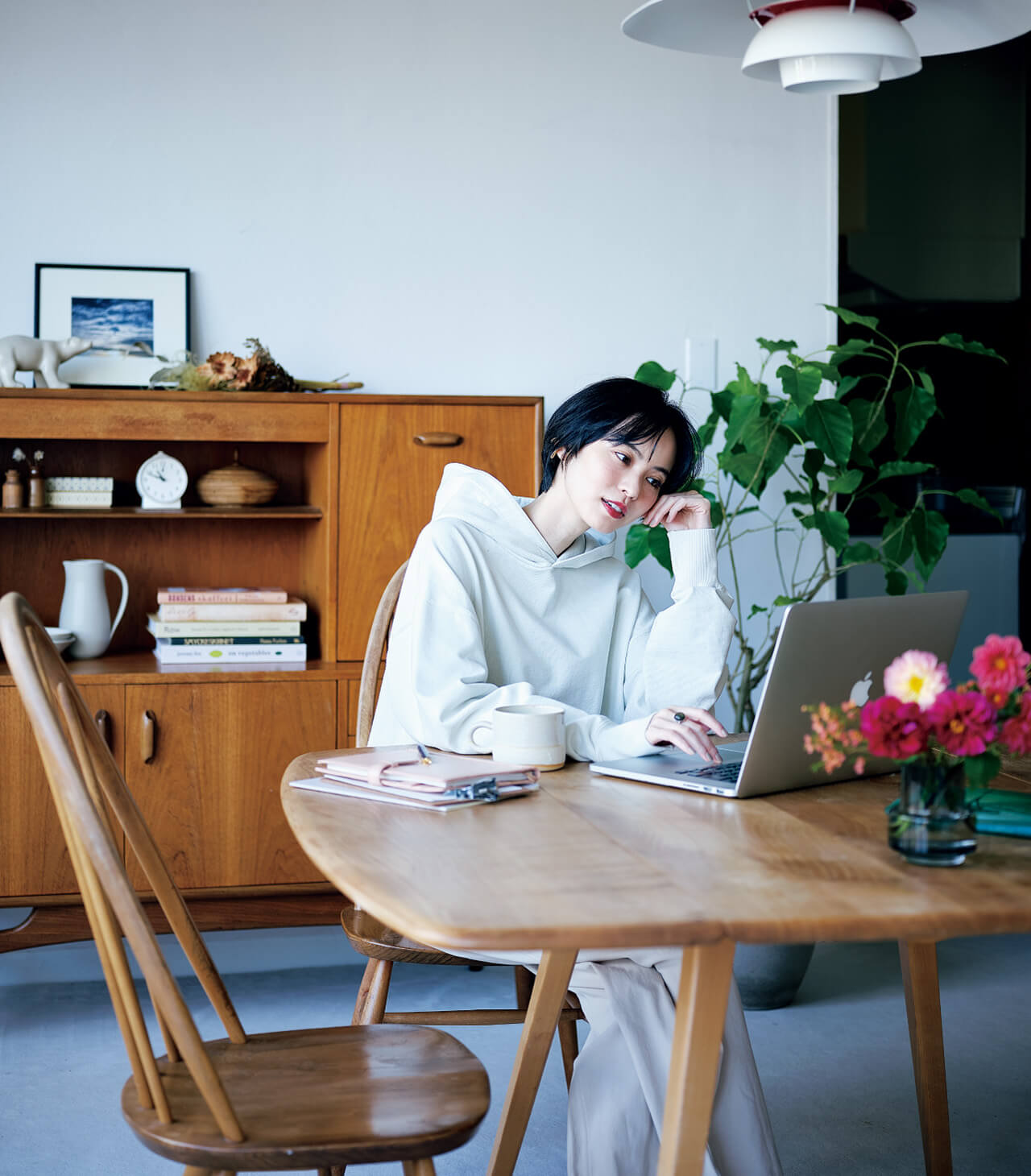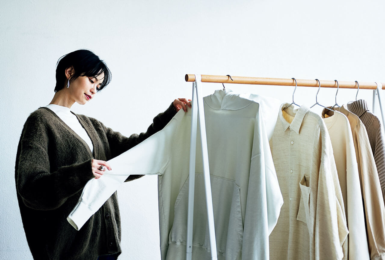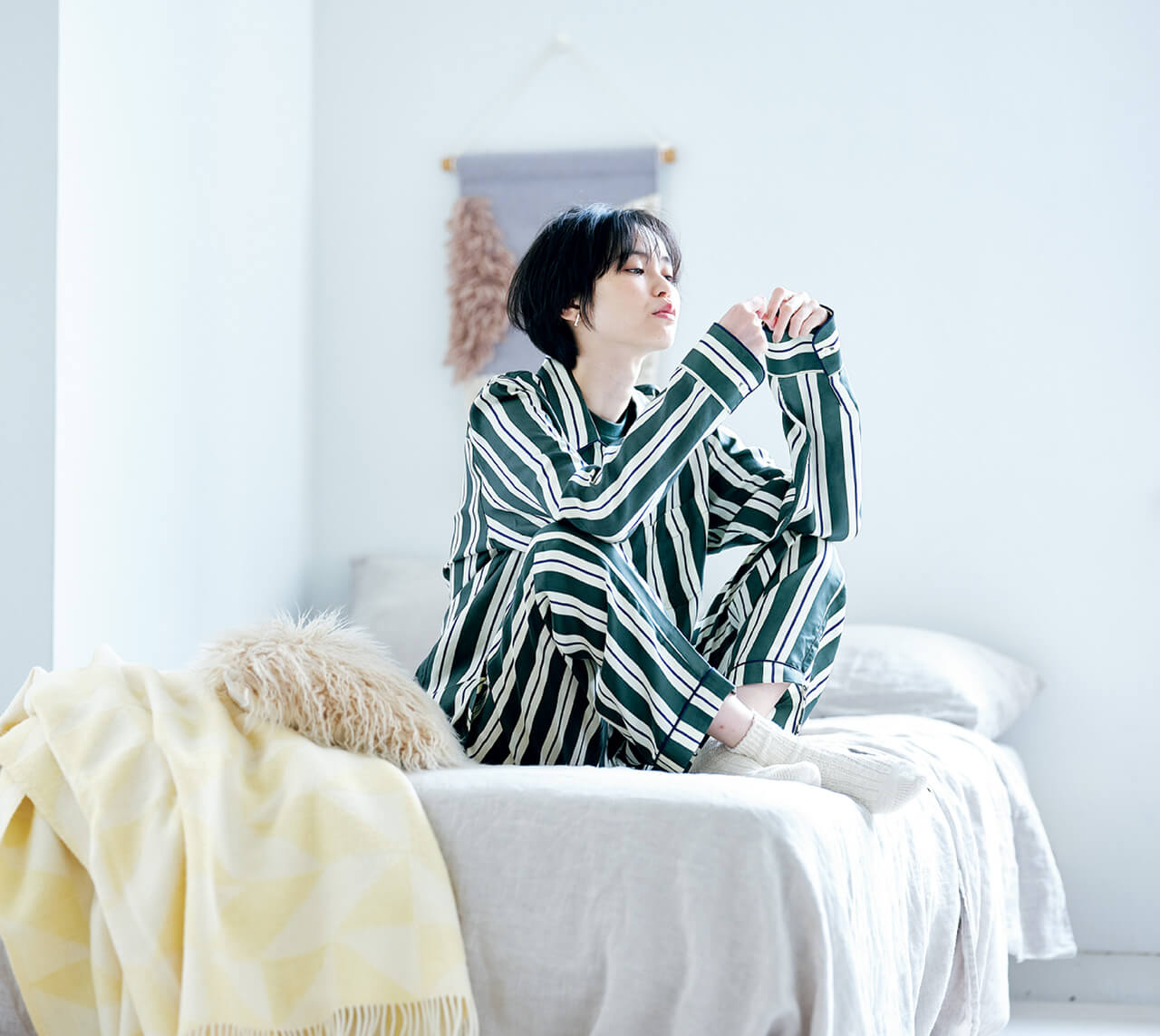 比留川游さんも「自宅で着るものは、コットンやシルクなど肌ざわりがいいものを、じっくり時間をかけて選んでいます」とか。「肌ざわりを大切にしたいからこそ洗濯は悩みますね。素材ごとに洗剤は分けたほうがいいのか悩んで、結局手洗いにすることも」