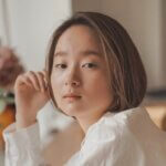 顔の面積と小顔バランスまで意識した前髪と顔周りのカットは、シースルーな前髪と、顔に沿ってななめに調整した顔周りがポイント。乾かしてオイルだけつければ完成するように調整します。