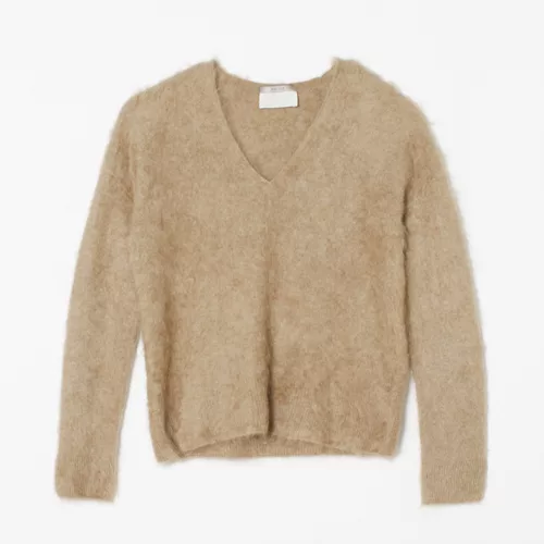 今年らしさが光るカシミアのシャギーVネックニットはニュアンスカラーがしゃれてます!