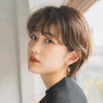 肩につかないくらいの長さに、毛先を切りっぱなしにカットします。トップと顔周りに1㎝程のレイヤーを入れて、少しのくびれと軽さを出します。