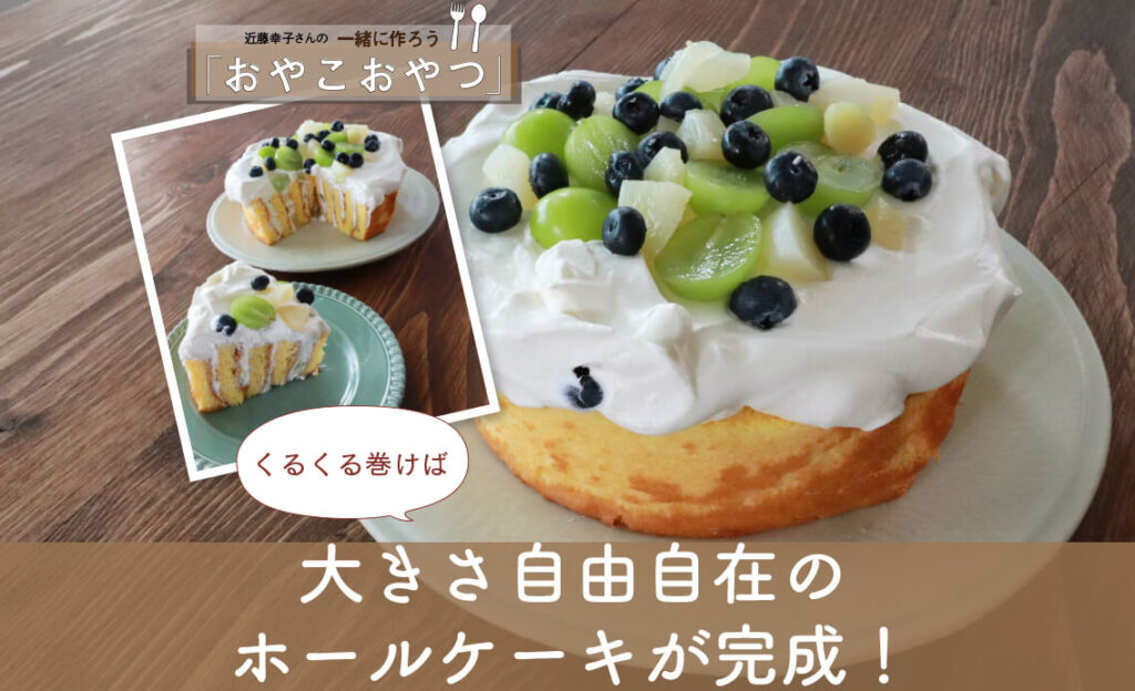焼いたスポンジを巻くだけでホールケーキが完成!大きさ自由自在のデコレーションアイデア/近藤幸子さんの「おやこおやつ」特別版Part2