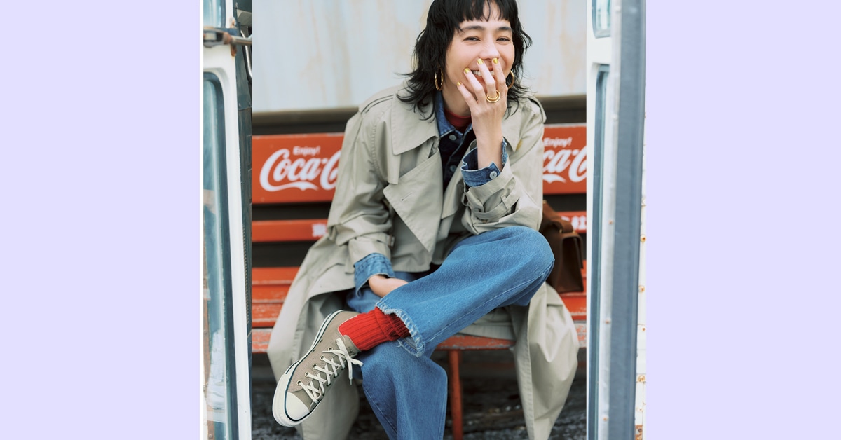 おなじみのコンバース「オールスター」も、ニュアンスのあるグレージュカラーで、洒落感が一気に加速!/明日なに着る?