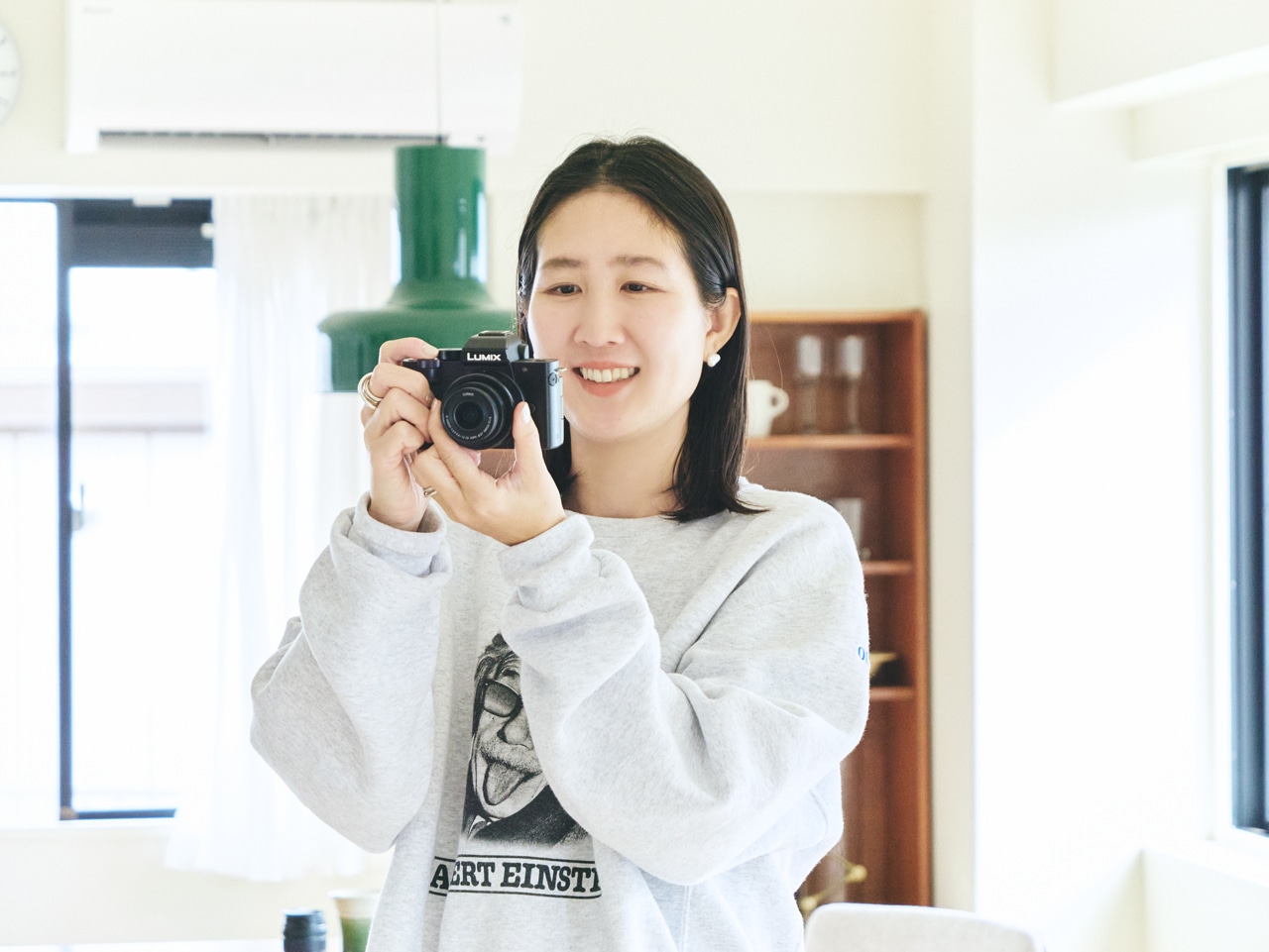 これまで写真は、もっぱらスマホまかせだった高橋さん。「露出」や「シャッタースピード」など、専門的なことはほぼわからず。そんな超初心者にも心強いのが、“iA(インテリジェントオートモード)”です。「このモードにしておくだけで、適当に撮ってもちゃんといい写真になっちゃうんですよ(笑)。『LUMIX G100D』が、明るさなどの難しい設定を、全部ベストに調節してくれて。いつものようにスマホで気軽に撮る感じでOKなのは感動でした」