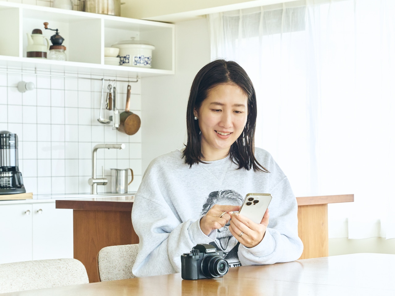 専用アプリ「LUMIX Sync」を使えば、Wi-Fi & Bluetoothでスマホのアルバムに画像を転送するのもラクラク。設定すれば、撮影のたびに画像を自動でスマホに送ることも可能です。「アルバム管理がスマホの写真とバラバラになるとたいへんだなと思っていたのですが、このシンプルさならすごく気軽です」