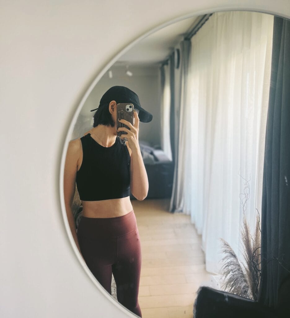 よくよく見てみたら、このキャップもレギンスも『GU』。下着も『GU』推し。ほんっとうに『GU』さまさま♡