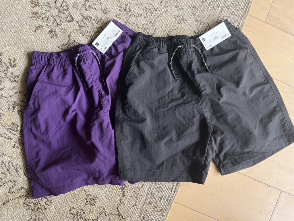 汗をかいても素早く吸収・乾燥する吸汗速乾機能がついた「ドライアクティブショーツ」を色チ買いしました。カラーは安定のブラックと深いパープル。ブラックはいわずもがなですが、深いパープルってどんなカラーとも意外に相性が良くって、1枚持っておくと実は便利なんですよね。バイカラーのスピンドル紐も、無難になりがちなTシャツコーデのアクセントにひと役買ってくれます。