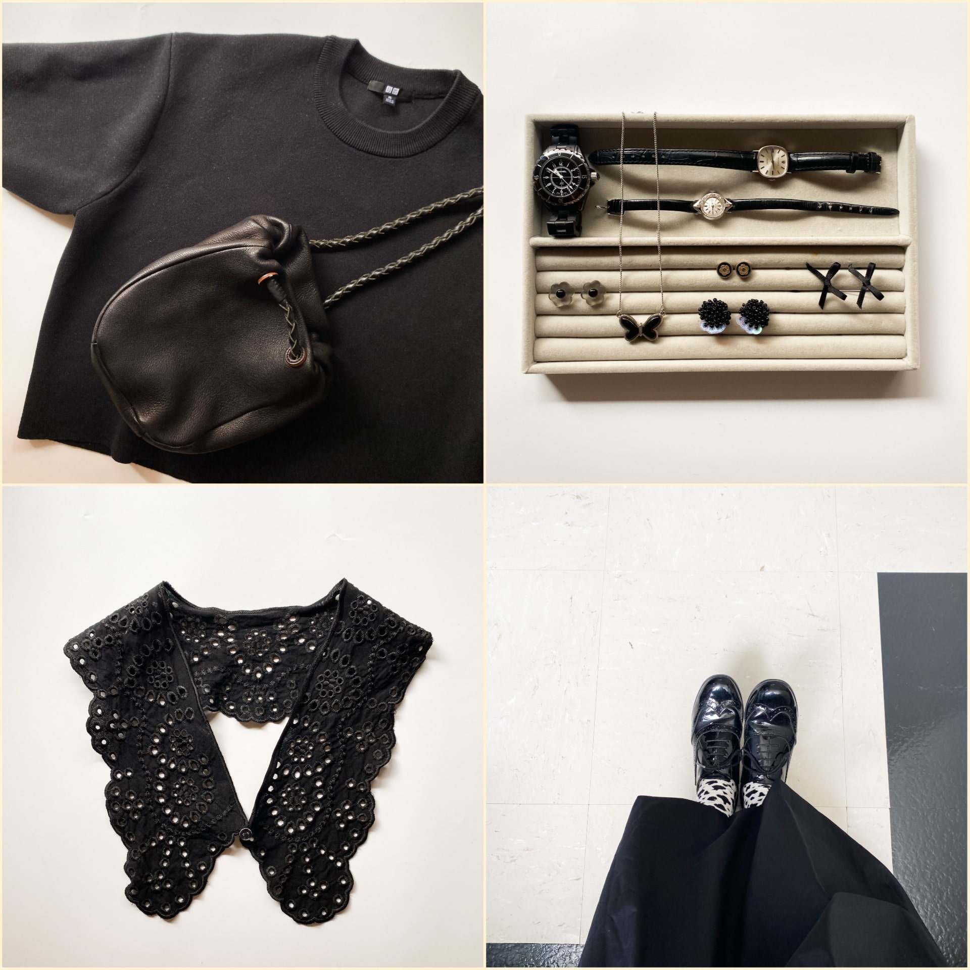 分厚いアウターや、ふわふわのニット。ボリュームのある服が多くなる冬コーデにはやっぱり「黒」の小物が頼りになります。少ない面積でも着こなしを引き締めてくれて、上質感もプラスしてくれる。おすすめ