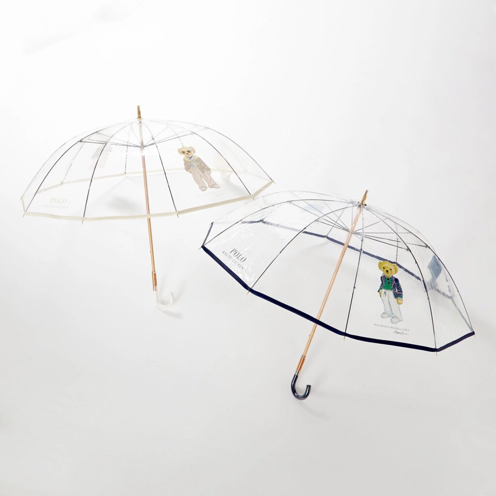 ポロ ベアが細かくちりばめられているのがとてもキャッチーな傘。小さなポロ ベアもきっちりおしゃれしているのが可愛らしい。
