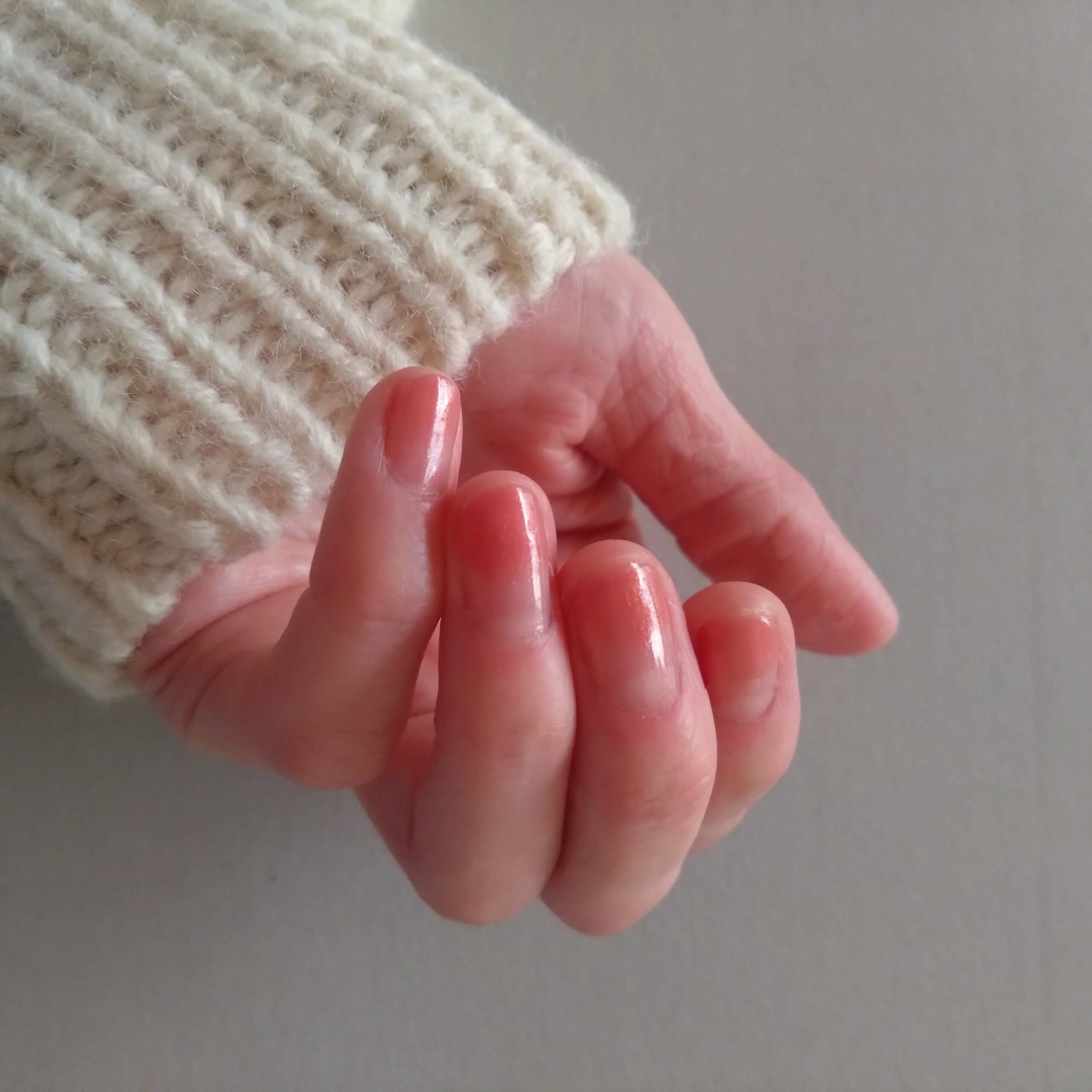 こんにちは。ゆかりといいます。 新年度のネイル投稿 手荒れカムフラージュのため、透明感のある色に頼りたい。 赤をぽってり爪先に、上からさらに重ねてツヤ重視にしました。