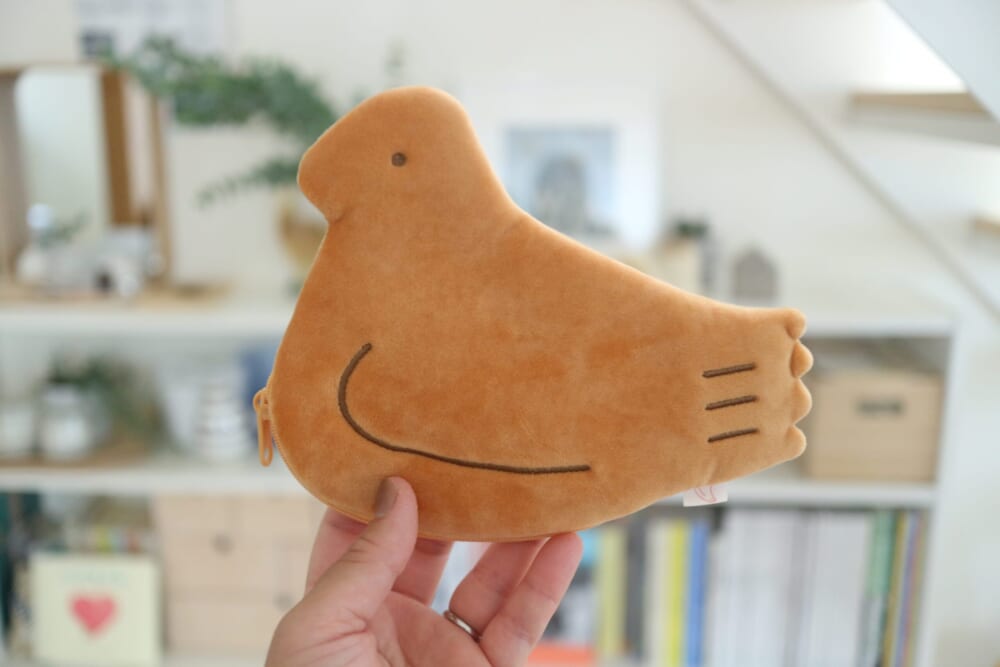 鎌倉にある鳩サブレーで有名な豊島屋さんの本店限定で、先月鳩サブレーの形をしたポーチが発売されました。この鳩サブレーの形をしたグッズはお店に行かれた方は見たことあると思いますが、他にもキーホルダー、箸