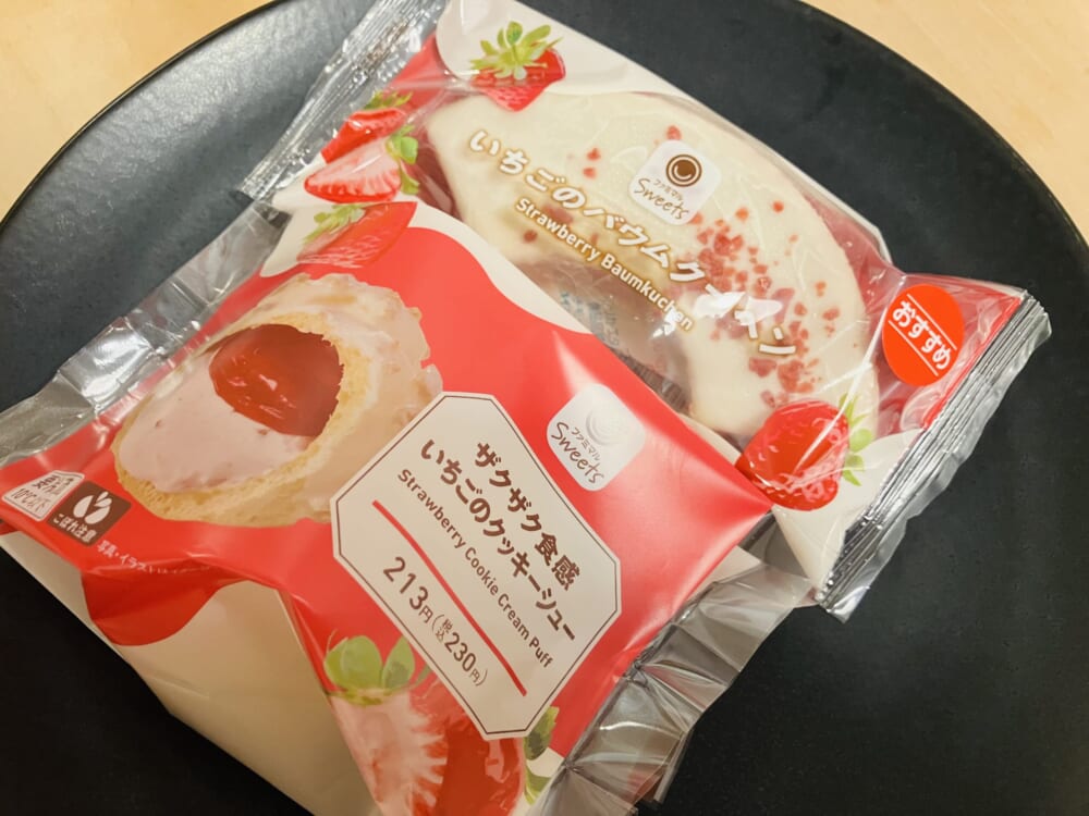【ファミマ】いちごのバウムクーヘン。いちごのクッキーシュー。甘酸っぱさプラスのご褒美スイーツ