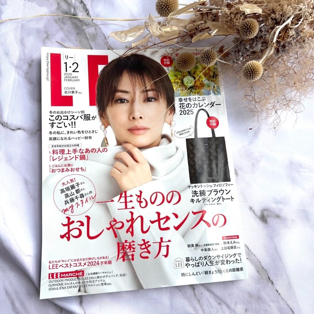 今月号はコンパクト版を! LEE12月号(2025年)、発売中。表紙は北川景子さん! LEE12月号が発売されています。もう明日には新年度、LEE1・2月合併号が発売になりますが…。