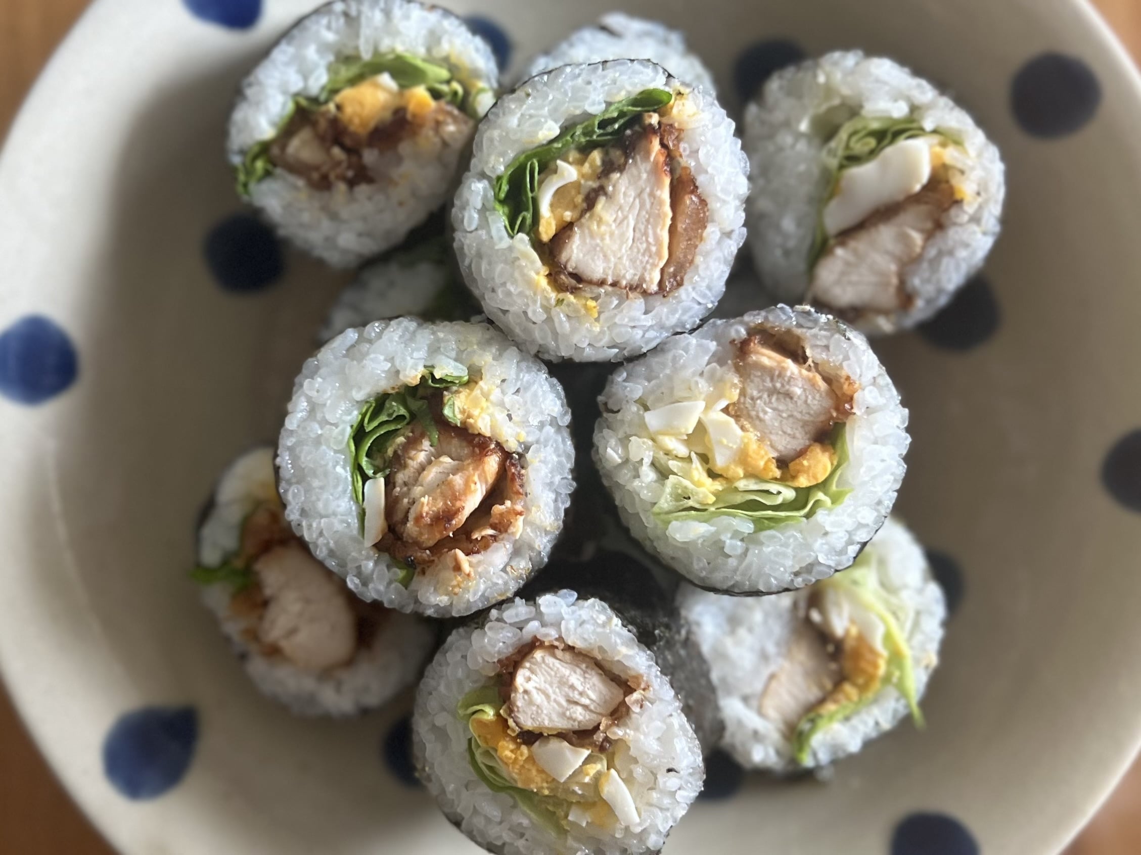 今年の節分も2月3日火曜日の平日なので一足先に節分ごはんを週末に楽しみました。今回はLEEレシピで紹介されていた、小林さとみさんの「唐揚げの太巻き寿司」。子どものころからスーパーのお惣菜で売っている