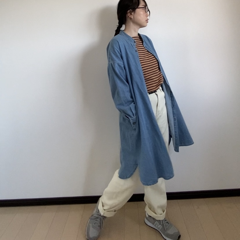 こんにちは、しえです。 今日はmizuiro indのスタンドカラーウールコートを使ったコーデをご紹介します。 このコート、LEEパーティで試着させていただいたんですよね。 すごく