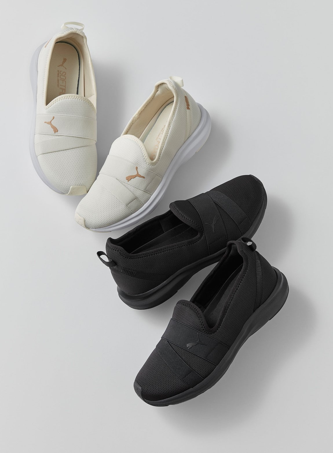 ムダのないプロポーション&ワントーンで、ソールに厚みがあるスタイリッシュなデザインを満喫! シューレースなしのスリッポンタイプだからきれいめシューズ感覚で履けて、デイリーに大活躍します。ゴールドのキャットモチーフがリッチなホワイトと、クールなブラックの2色展開。「PROWL 3 IHL」各¥8690/ABCマート(プーマ)