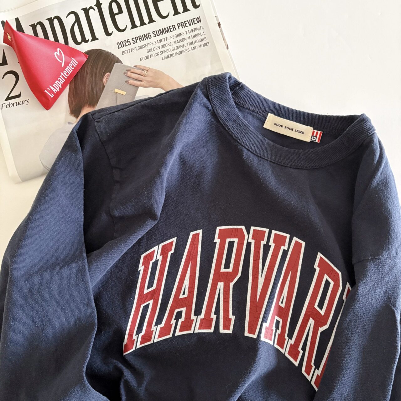 L’Appartement別注のGOOD ROCK SPEEDの「7分袖のTシャツ」をSALEで購入しました。少し厚めな生地感でゆとりのあるデザインなので一枚でも着やすいと思います。シャツとのレイヤードスタイルや、ジャケットのインナーにもぴったりなので、大活躍してくれそうです。