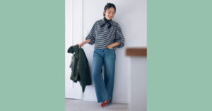 抜群の美脚効果を発揮するワイドデニムも春らしい 定番のボーダーシャツも、シルバーラメのラインを配したボーダー柄や、ふんわり膨らむボリューム袖でひと味違う華やかさを演出。開きすぎないボートネックはスカーフアレンジとも好バランス。 Staff Credit 撮影/小嶋洋平 ヘア&メイク/廣瀬浩介(UM) スタイリスト/福田麻琴 モデル/高山 都 構成・文/鈴木絵美※モデルの身長は158㎝です ※こちら … 続きを読む ボーダートップス+デニムという鉄板のワンツーコーデも、ラメの輝きとひとくせシルエットで今を感じる装いに/明日なに着る?