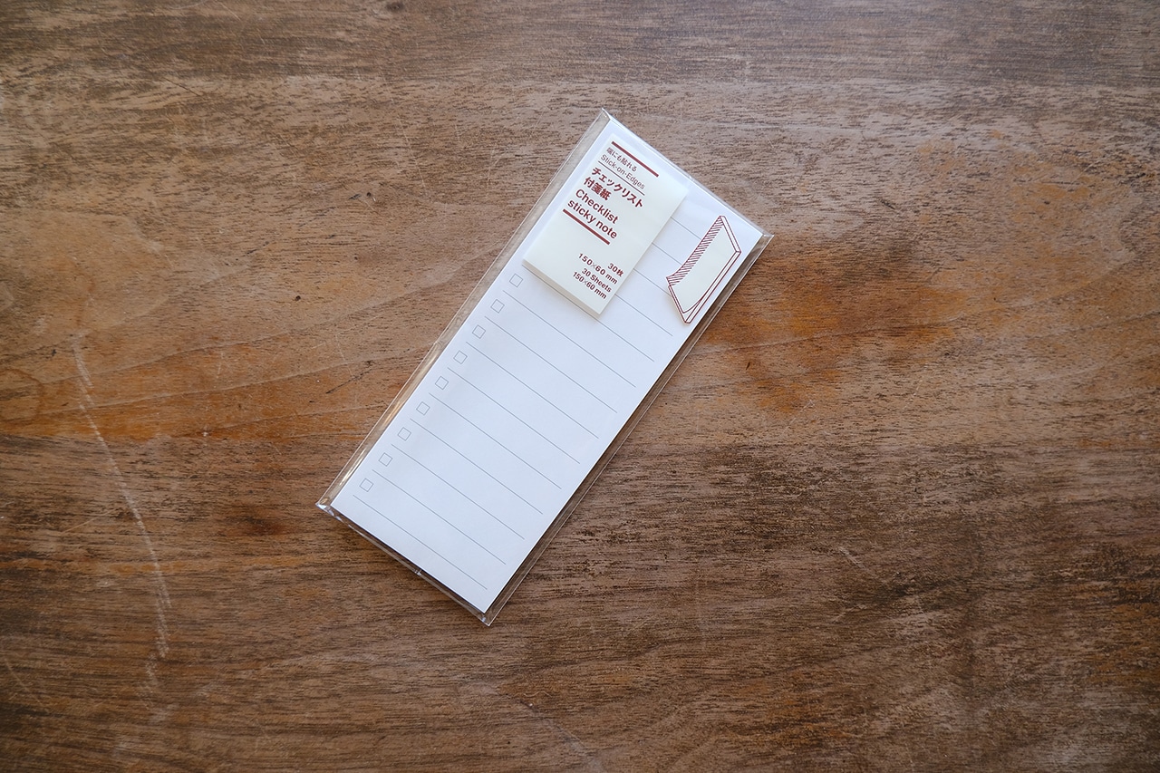 1冊30枚のチェックリスト。今までもチェックリスト、TODOリスト的な文具は充実していた無印良品ですが、貼って剥がせるというのはとても嬉しい新機能です。メモの左側が貼り付けられるようになっているので、ノートやパソコンの端っこにペタッと貼っておくのが使いやすそう。