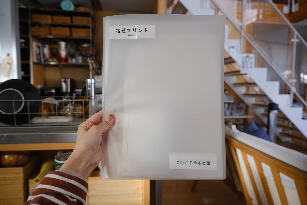 背表紙は存在せず、スリムに持ち運べて、本体も中身のクリアポケット部分も丈夫なところが特徴的です。説明書の保管や、出前のチラシの整理にもよく使われているとのこと。