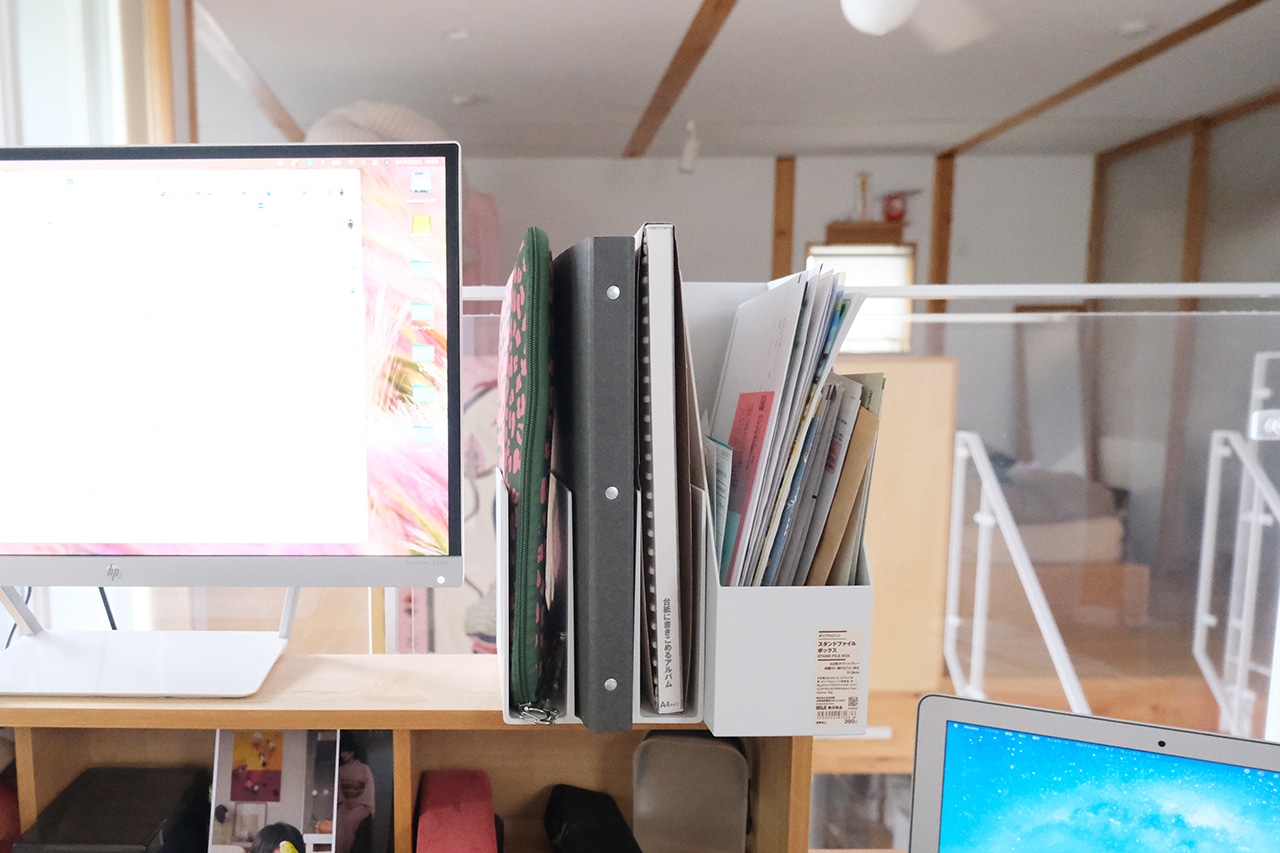 こちらはかの有名なファイルボックス。最近ではダークグレーや、クリア色なども販売され始め、収納の幅がさらに広がっているところです。