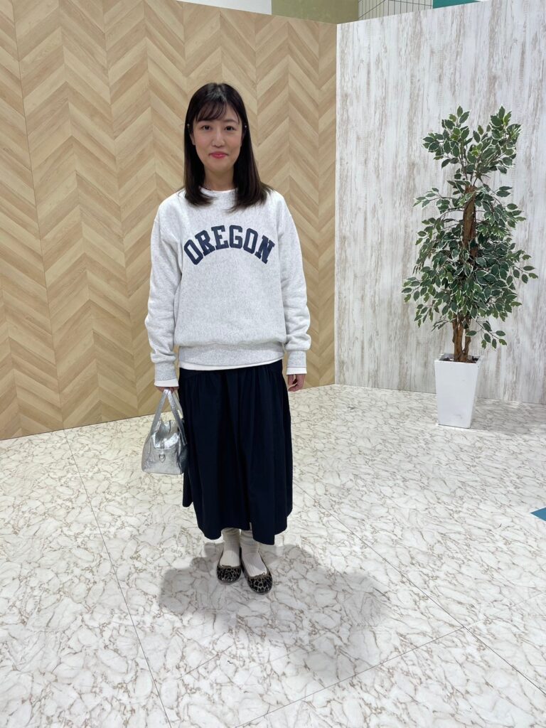 この時期は実用重視で黒のショートブーツに頼りがちだというさとささん。それ以外の選択肢があまり思いつかないともいいます。「春への移行期に新鮮な気分になれる靴が欲しいけれど…」というさとささんに高橋さんがオススメしてくれたのはローファー。「学生のときに履いていたようなきちんと系のローファーから淡くソフトな印象のローファーまで今季、豊富に出ています。黒のショートブーツが多いさとささんが、まず取り入れやすいのは、黒のローファー。光沢感のあるグレーソックスでスカートの間をつなぎ、きれいめな着こなしに」(高橋さん)