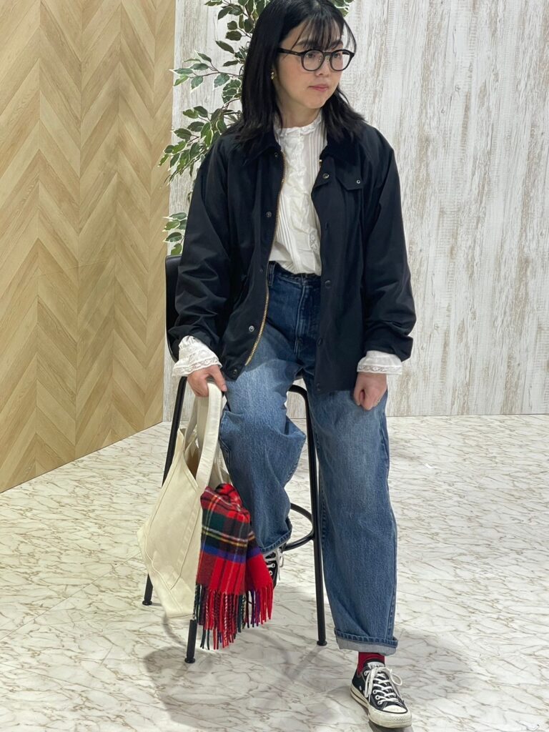 靴下¥1210/タビオ ブラウス¥39600/ビリティス(ビリティス・ディセッタン) パンツ¥20900/バビロン 新宿(バビロン) イヤリング¥11000/フーブス(イリスフォーセブン) バッグ¥11000/L.L.Beanカスタマーサービスセンター(エル・エル・ビーン) その他/本人私物