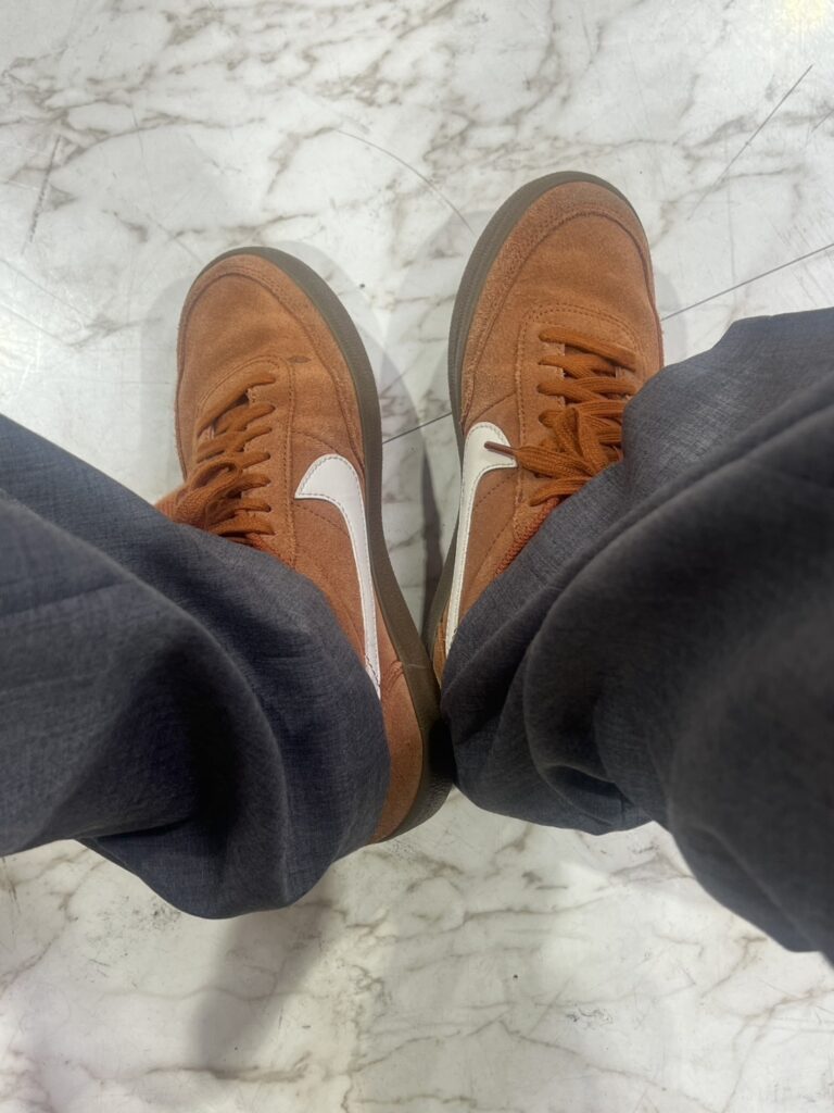 高橋さんもカラースエードのスニーカーで撮影に臨みました!