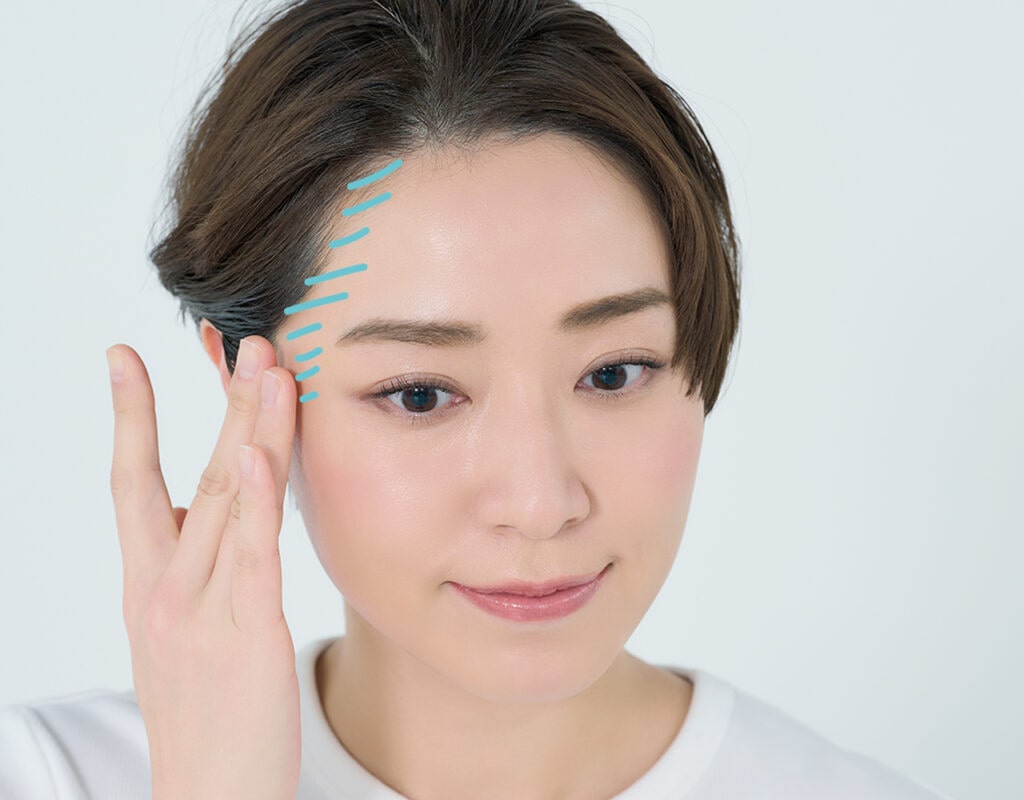 フェイスラインなど、髪の毛がかかるところにムズかゆさを感じたら、追いゆらぎケア。少量のバームを中指と薬指の腹にとり、フェイスラインを軽くなでるようにうっすらとのばして。