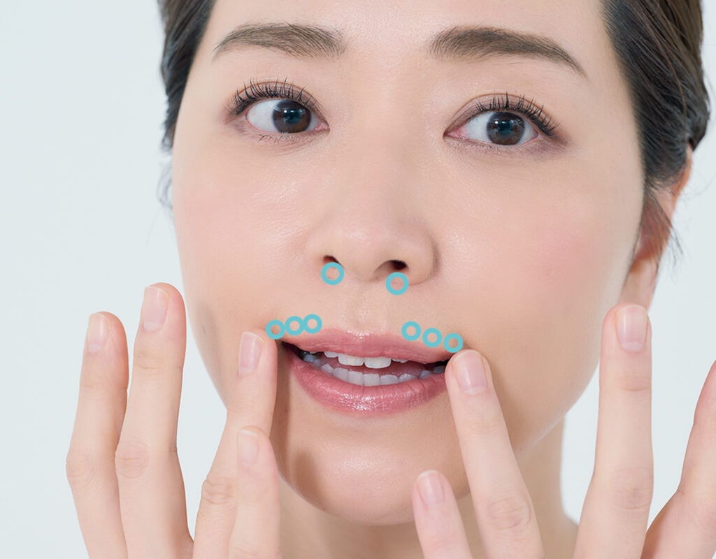 指先にごく少量のバームをとり、鼻水で荒れやすい鼻の下、口角の乾燥や赤みをケア。トントンとスタンプづけ。屋内から外に出る前に仕込んでおくのもおすすめ。