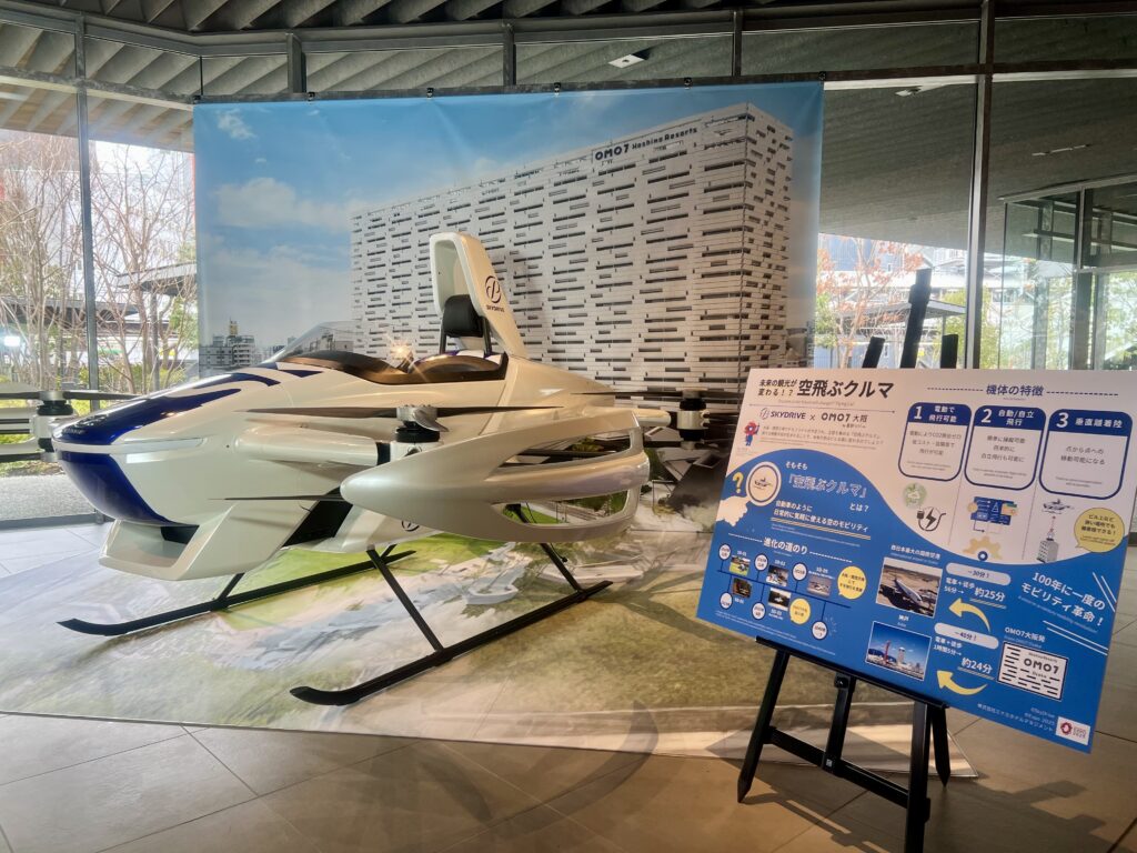 第一弾は、大阪・関西万博で空飛ぶクルマのデモフライトを予定している「株式会社SkyDrive」とコラボレーション。2020年8月に日本初の公開有人デモフライトを成功させた試験機の展示機が、館内に登場!