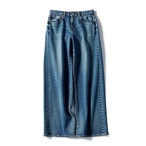 今春、レッドカード トーキョーを代表する『30th Anniversary』が、生地やフィット感を統一し、シルエットのバリエを増やした『35thAnniversary』シリーズへとリニューアル。こちらはその中でも抜群の美脚効果を発揮すると、展示会でも話題だったワイドモデル。ウエストや腰まわりをすっきりミニマルに見せ、太ももから裾へゆるやかに広がる設計。