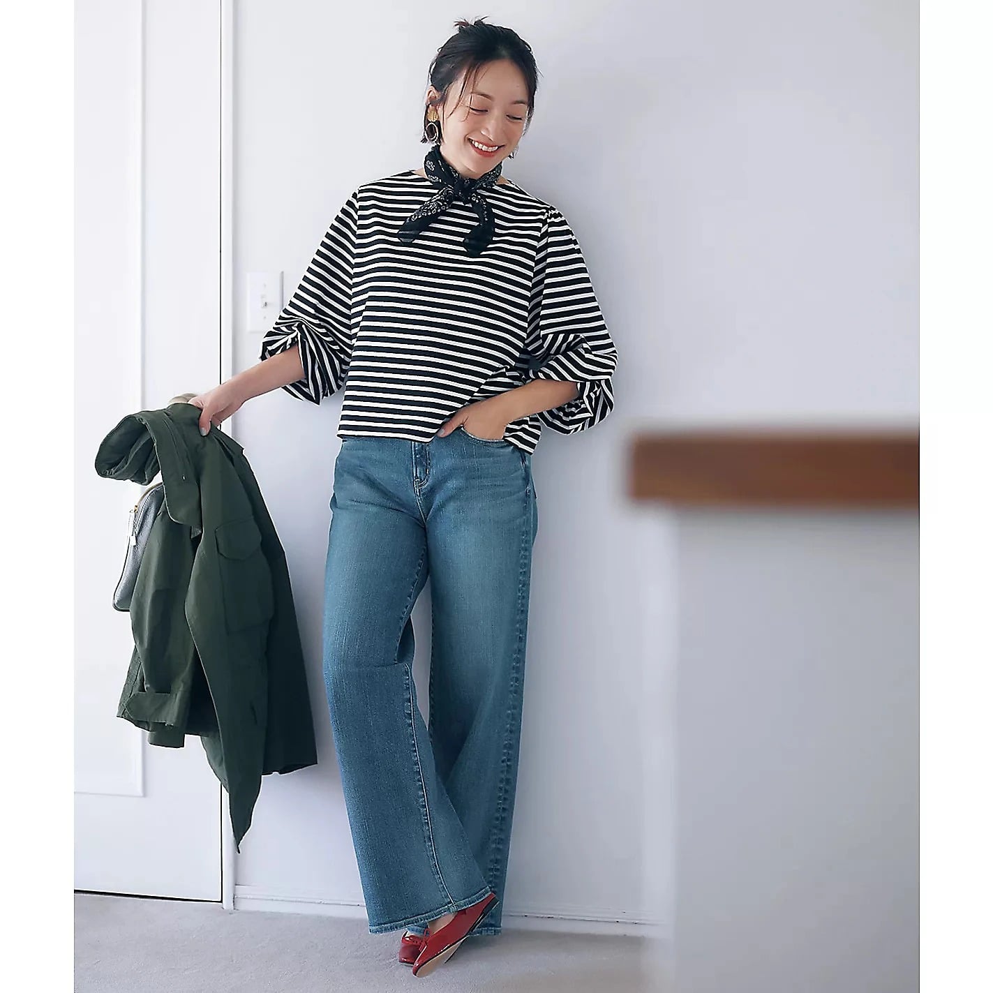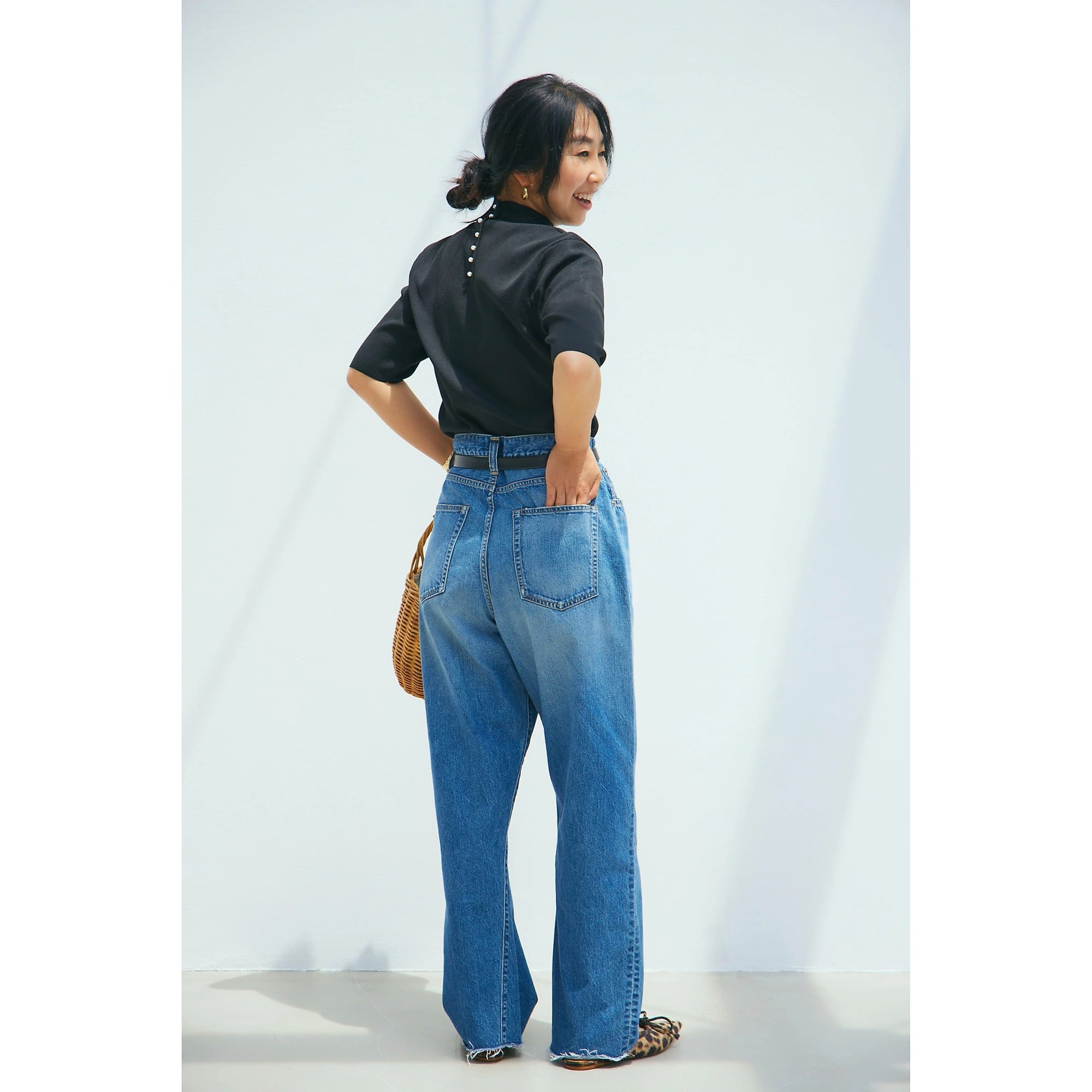「硬くて重い」というデニムのイメージを覆す、ソフトな薄手コットンを使った軽やかな一本は、これからの季節に最適。ハイライズながらウエストのサイドがゴム仕様になっているから、窮屈感なくおなかまわりラクちん。