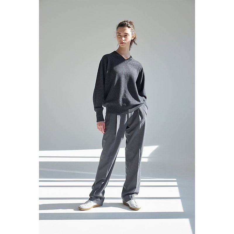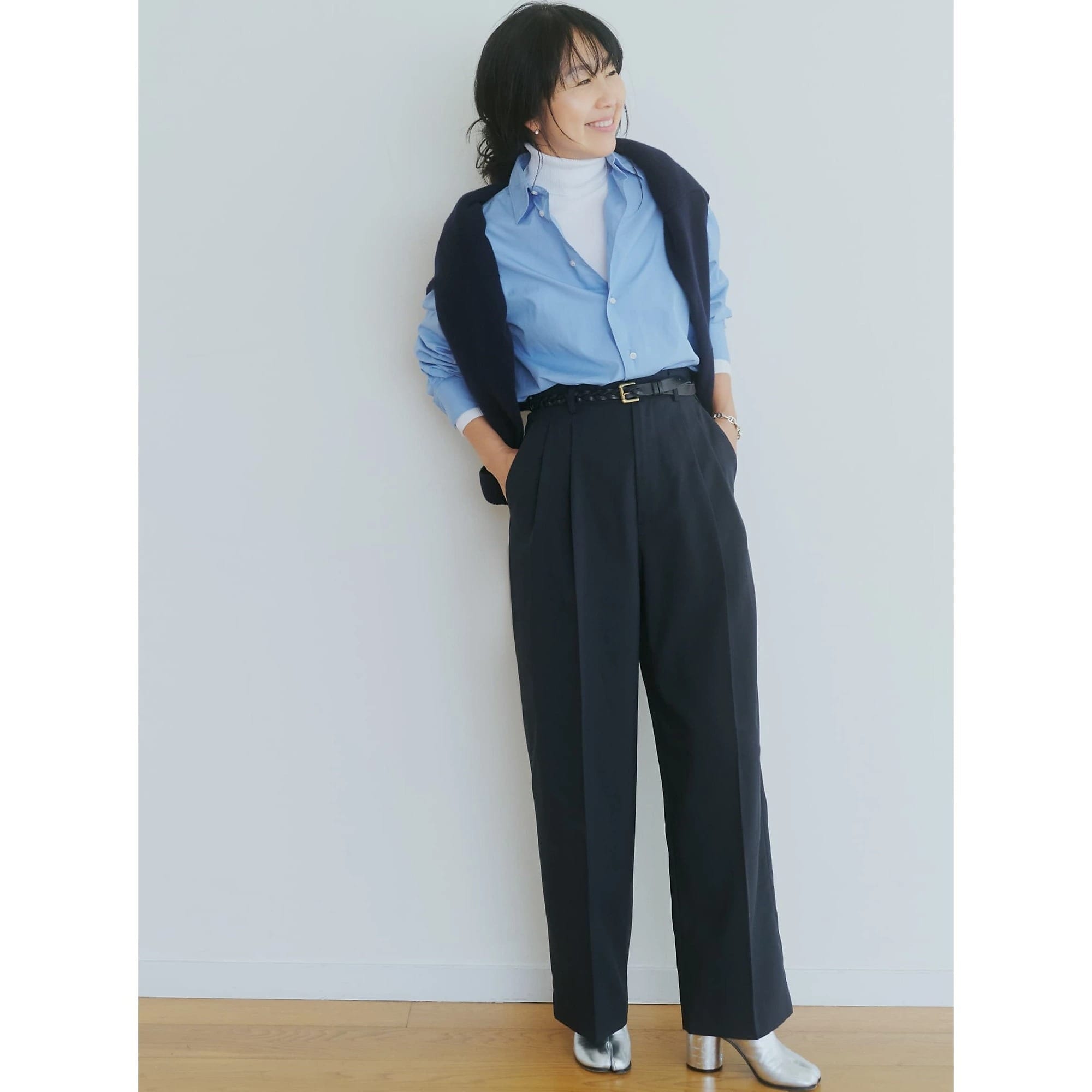 ウールのような見た目なのに、実はポリエステル100%でお手入れがとても簡単! シワになりにくく、手洗い可能という気さくさが魅力のパンツです。とにかくラインがきれいで、Tシャツに合わせるだけでサマになるから、どんなシーンでも頼りに。(スタイリスト福田麻琴さん)
