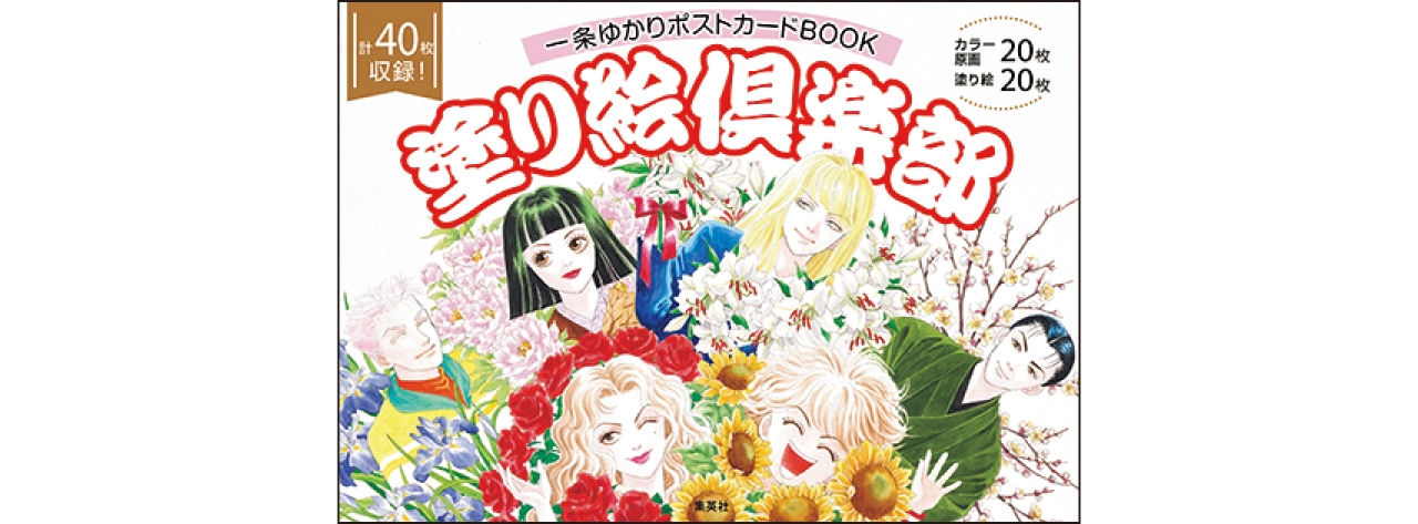 代表作の扉絵や漫画雑誌の表紙、付録用のイラストまで。一条ゆかり先生の美麗なカラー原画20枚と、その塗り絵20枚の計40枚のポストカードを収録した『塗り絵倶楽部』。見て、塗って、飾って、人に送っても盛り上がる楽しい一冊。¥1980 集英社