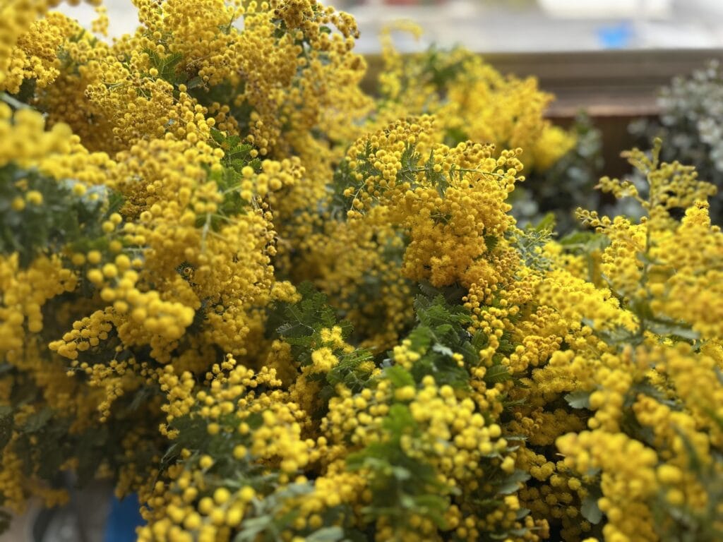 異常気象でミモザの開花が遅く不安定な供給のようですが、レッスンでは大量に用意していただいて、ボリューム満点の豪華な仕上がりになりました。香りも楽しませて貰って、眺めてるだけで元気を貰えます。