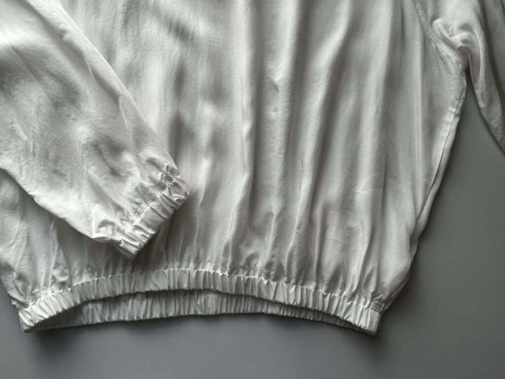 ハイネックは太って見えるかと心配でしたが、ラグランスリーブが肩を華奢に見せてくれて、ウエストや袖にはゴムが入っていて好きな位置でとめられて……全体的にふんわりするので一枚でコーデが決まります!