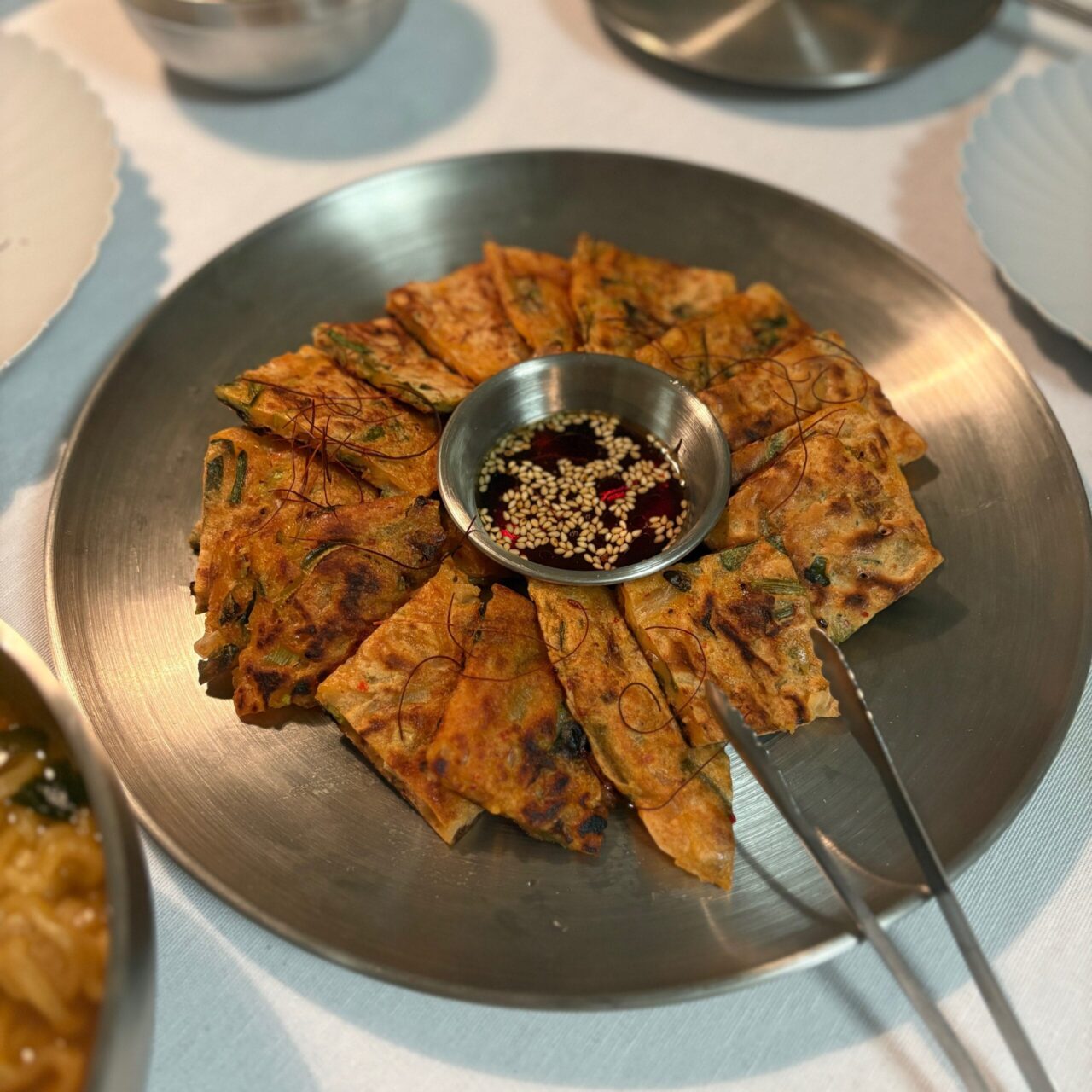 チヂミ粉と水、お好みの材料を混ぜて焼くだけで簡単!この日は、キムチとにら、長ねぎで作りました。手軽に作れて腹持ちも良し!後日、冷凍の海鮮ミックスと長ねぎでも作りましたが、こちらも大好評でした♡
