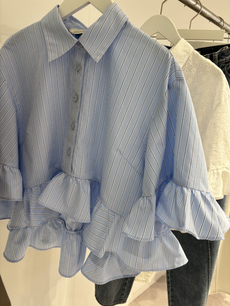 トップスでは、袖口と裾にボリュームを持たせた5分袖のペプラムシャツ(2990円)に人気が集中しそうな予感。