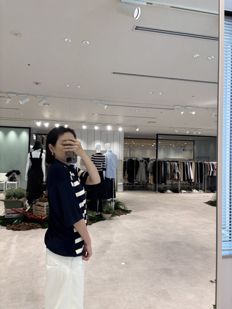フロントはボーダー、バックは無地の切替えデザインが新鮮じゃないですか?