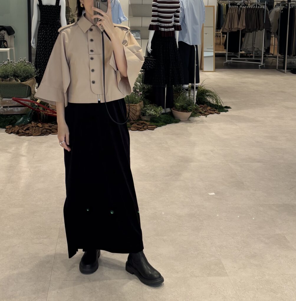 デニムはもちろんですが、トレンドの膝丈パンツに合わせても可愛いだろうな~と。