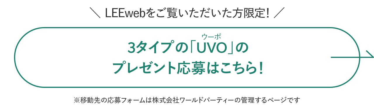 このページをご覧いただいたLEEweb読者・抽選で10名様に3タイプの「UVO」をプレゼント。下記の特設サイトから是非ご応募ください!