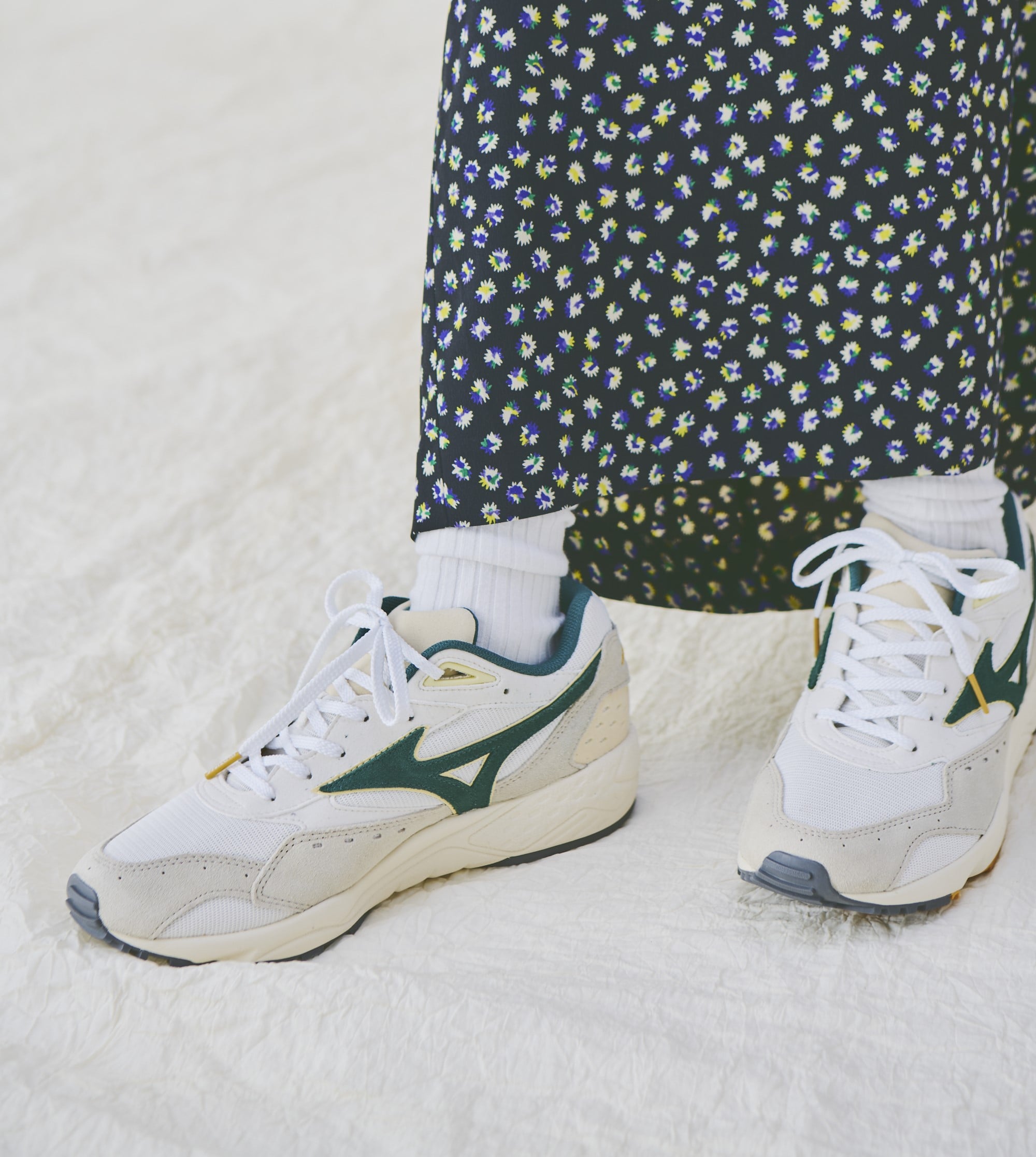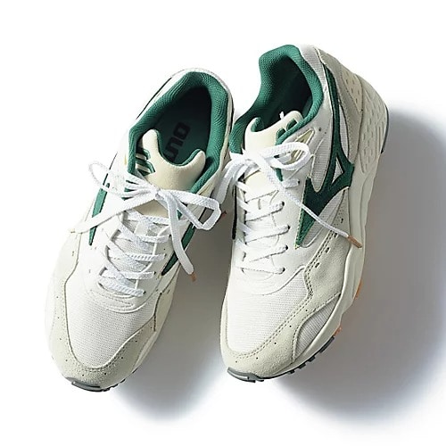 こっくりとした真緑と温かみのある白&ベージュの配色、ほどよいボリューム感が、今の気分に合う“おしゃれなやぼったさ”を演出します。レトロ顔スニーカー初心者でも照れずに履きこなせる点も好ポイント。横幅がやや細身の為、サイズアップしてのご購入がおすすめです。