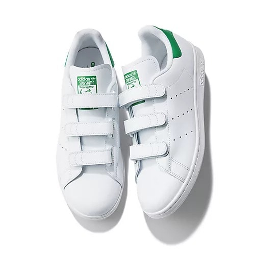 1970年代にテニスシューズとして生まれたスタンスミス。ひさびさにベルクロ(マジックテープ仕様)タイプが登場。サッと履けるので、日常使いにピッタリなデザイン。なめらかなスムースレザーに3本のパンチングラインが入ったクリーンでクラシカルな雰囲気が大人気。