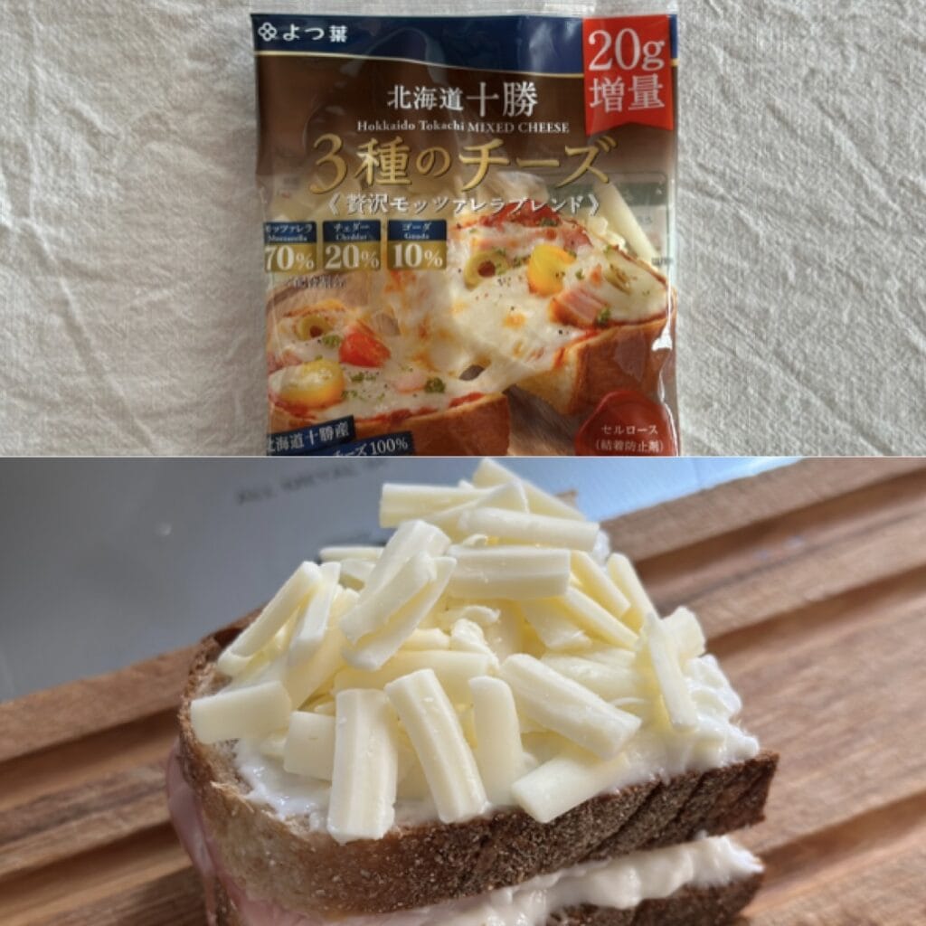 以前リュスティックの記事でもご紹介しましたが、こちらも作り方は同じです。ほぐした自家製ツナの上にピザ用チーズをたっぷりのせ、ブラックペッパーを振り、トースターで焦げ目が付くまで焼きます。これが本当に美味しくて、家族にも大好評!この日は同時進行で、フライパンを使ってきゅうりとハムのホットサンドも焼きました。