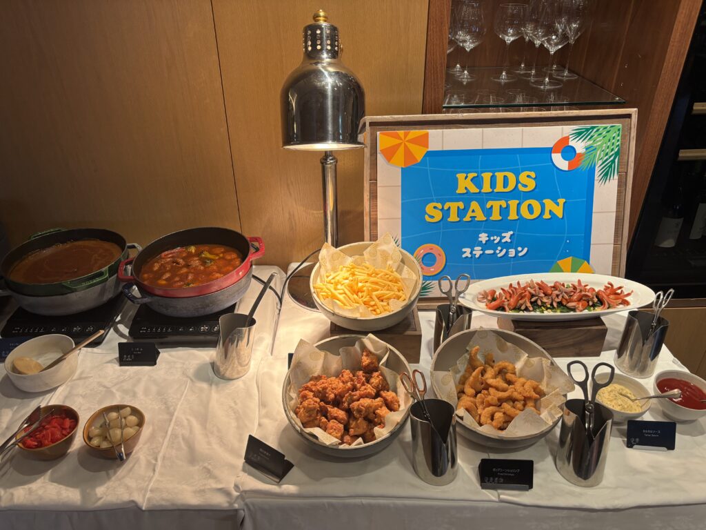 子連れ旅だと「どこに行く?何食べる?」の判断が意外と負担だったりしますが、一切それがないんです。沖縄料理から中華、ビュッフェといろいろそろっていて、大人も子どもも大満足! ビュッフェのKIDSメニューなんて、大人が食べたくなるほどパーフェクトでした。